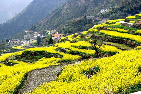 胥岭,得名于伍子胥的典故。子胥当年逃亡于此,在溶洞疗伤之时喜获天书。因此,伍子胥将此地视为一方福地,临走时题名胥岭。胥岭村就坐落在这海拔400余米的山坳里,四周群山环抱,千层梯田从山脚直伸岭尖。春来之时,层层叠叠的梯田里铺满金黄的油菜花,与桃花、梨花、山花相映成趣,在古朴的民居和几百年古樟的衬托下,构出了一幅自然美景画卷。沿着古官道走下来,子胥庙遗址、子胥茶园、胥乐亭散落其间。还有许多深不可测的天然溶洞尚待开发,适宜探险。村内气候冬暖夏凉,是天然的避暑胜地。