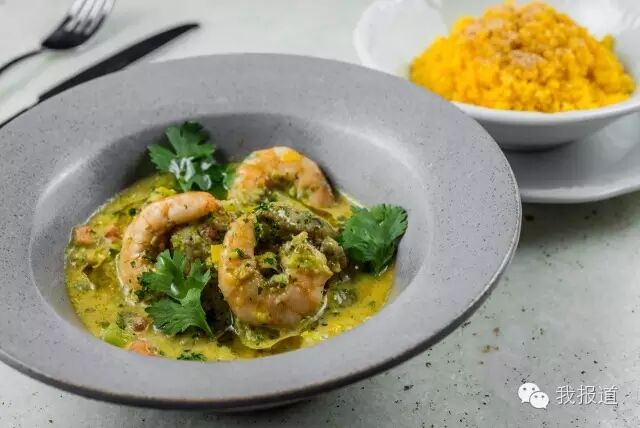 向熬至浓稠的汤底中加入鲜虾和椰子一起炖煮,不仅汤汁浓滑,而且味道甜香。传统的椰奶炖虾是用棕榈油烹调而成,微酸的番茄汁、香滑的椰奶和清新的柠檬是汤底成功必不可少的原材料。