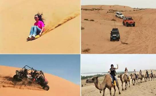 在沙漠中有很多的娱乐设施。比如骆驼、沙地摩托、冲浪车等等一系列的项目。其中在骑骆驼的时候要注意上下骆驼的重要事项,要左上左下。上驼后用脚踩稳驼镫,手要扶稳,不要大喊大叫,手里尽量不要携带物品,帽子要戴好、戴紧、以防风刮走。要防止骆驼起来和卧倒时将人摔下。在沙漠乘坐冲浪车、和滑沙时,要谨记教练的注意事项。不要做高危动作,以防意外的发生。