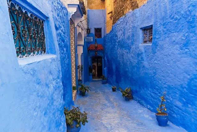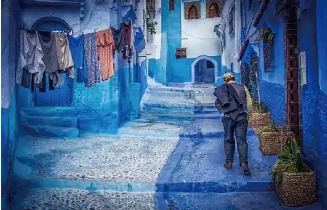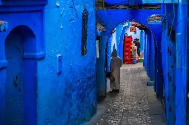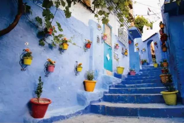 舍夫沙万是摩洛哥西北部的一座山城,城镇内大多数民宅门口、阶梯和墙壁都被涂绘成灿烂的蓝色,极具吸引力,与山间清爽的空气一起给人以耳目一新之感。