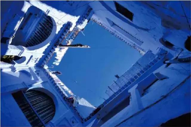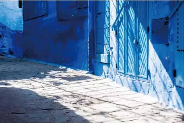 漫步小城,各种蓝色,到处蓝色,建筑是蓝的,大门是蓝的,地板是蓝的,无论哪个转角,都是无止境的蓝。