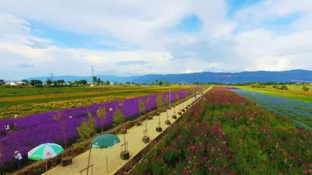 大丽路旁,1700亩花海,勿忘我、格桑花、醉蝶花……蓝红黄紫,在苍山洱海间成为最靓丽的景色和名片,5月20号开园。