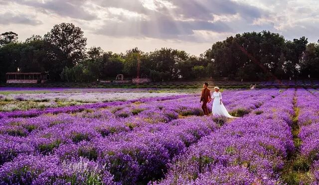 进入东风韵庄园,大片的紫,大片的绚烂,缓缓地从天空的两边无尽蔓延。每一缕风都掺杂着花香的气息。甚至可以听见,花儿窃窃私语的声音。紫色的纱幔随着阳光飘动,静谧、安然、香气微醺。一起徜徉在紫海中,相依在大风车下。