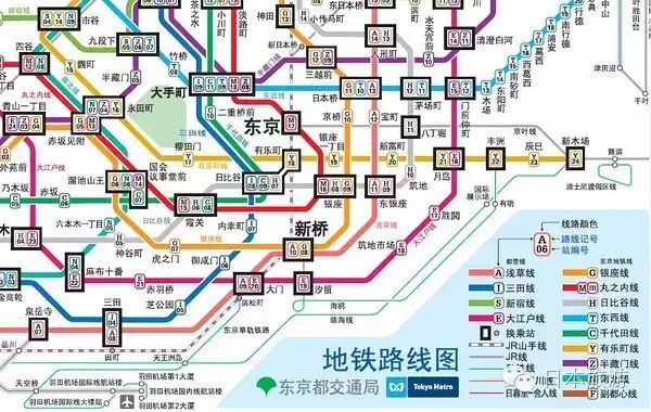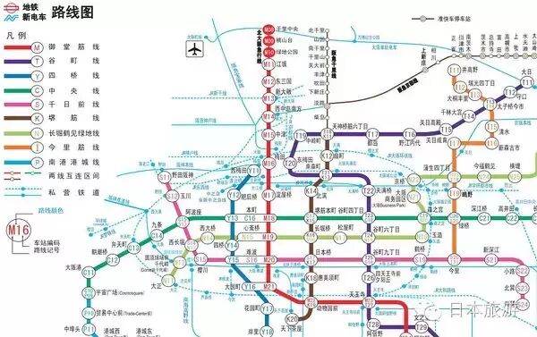 3.搭乘公交和地铁之语言,所去的三个城市地铁线路和公交均不需要问询,日本地铁线路设计的很合理,即地铁站内基本都可拿到线路图,每条线路的颜色不同、线路站点由线路的英文字母简称和数字组合而成。