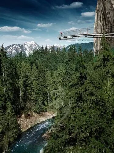 以滑雪成名的胜地惠斯勒。不滑雪,一样能令你心跳加速,这就是惠斯勒高空滑索。你从两峰之间飞驰而过,劲风扑面,感受飞翔的乐趣。