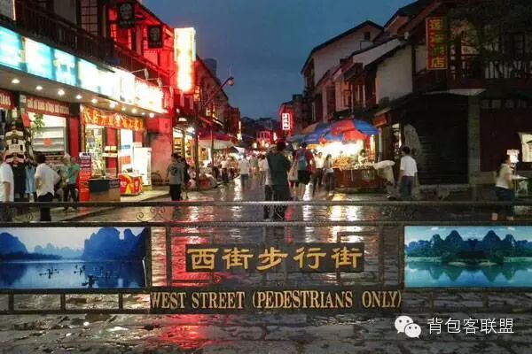 西街的夜晚比白天更加热闹,路旁有着各种小店,各种小吃,其中核桃花生糊、桂花莲子羹比较著名。除了特色小吃,还有许多热闹非凡的酒吧,酒吧里外国人很多。晚上西街很是热闹,如果住宿在此,可能会比较吵闹。