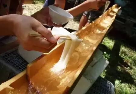 流水面是素面(そうめん)的一种,是夏天相当受欢迎的料理之一。流水面会顺着竹筒内的水流而下,要把握适当的时机将面捞起来,真是再刺激不过了!