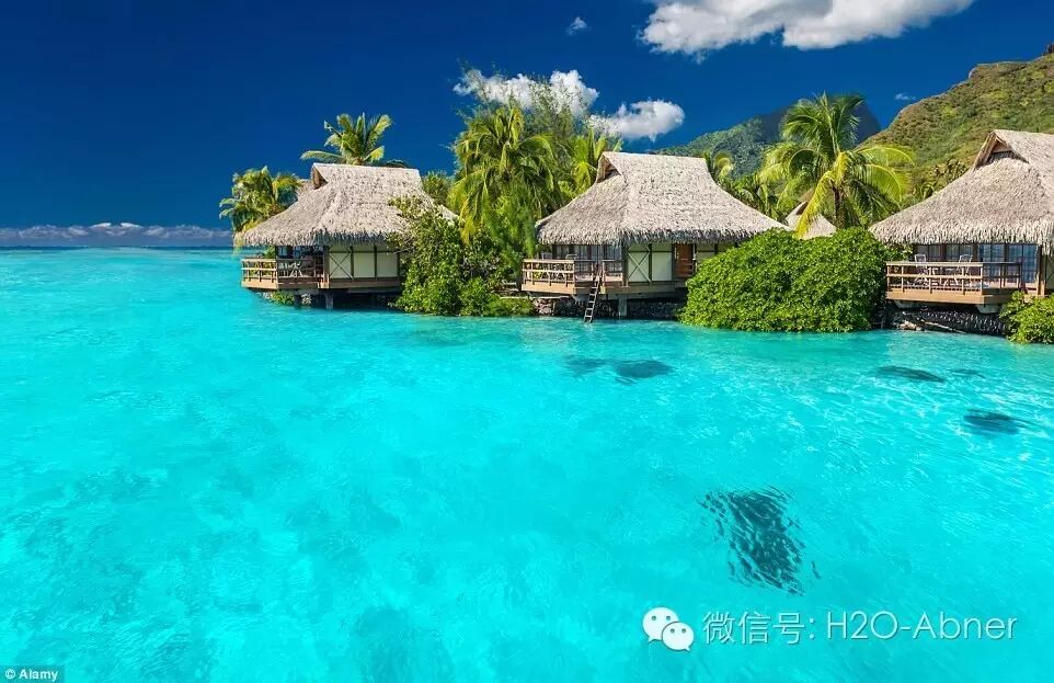 绿松石般的海水和青葱的热带岛屿植被遥相呼应