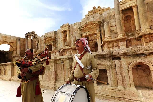 经历了古希腊、罗马和拜占庭、阿拉伯五麦叶王朝和阿巴斯王朝的杰拉什古城,高大的石柱千年屹立,宽阔的古剧场是约旦现存三个剧场中最大的一个,至今每年的杰拉什音乐节都会在这里举行。