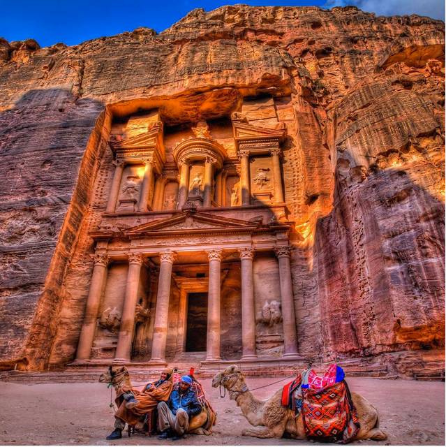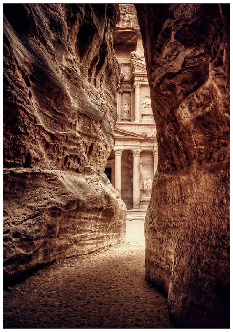 佩特拉在希腊语中是“石头”的意思,不过这个称谓绝没有冰冷的感觉,恰恰相反,当太阳渐渐升起,阳光照射在周围的万丈岩石上,这里到处迸发出一片耀眼的赭红色,让人感到仿佛置身在硕大的玫瑰园中,瑰丽得辨不清方向。