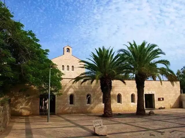 五饼二鱼堂是纪念的耶稣在加利利传道时用5个饼和2条鱼喂饱了5000人的故事。里面用马赛克铺的鱼饼图案,同样出现在各种旅游工艺品上。