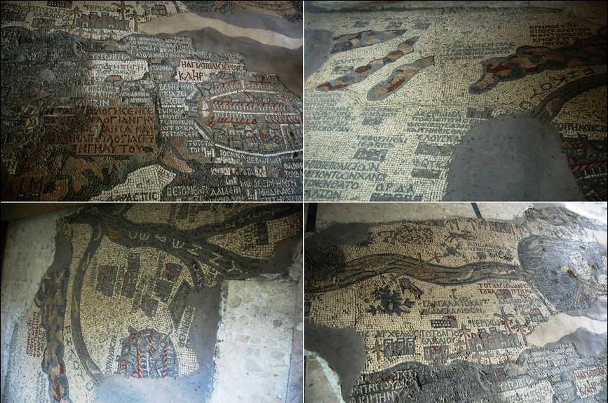 而使马代巴声名远扬的则是一副残缺的以耶路撒冷为中心的古“巴勒斯坦”马赛克地图。这幅马赛克制作的“古巴勒斯坦地图”镶嵌在马代巴城内圣乔治东正教教堂的地面上。圣乔治教堂于公元747年马达巴被大地震所摧毁,这个城市就在地下沉睡了一千多年。直到重建圣乔治东正教堂的时候,发现了这幅古老的中东地图。