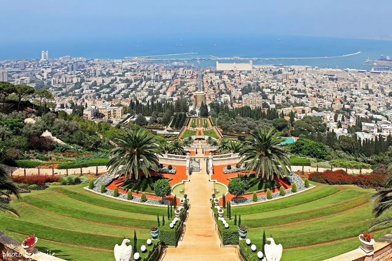 现代世界的空中花园,位于以色列海法市的卡梅尔山上。整座花园依山而建,自山脚至山顶长达1公里,对称齐整,极具波斯风情。