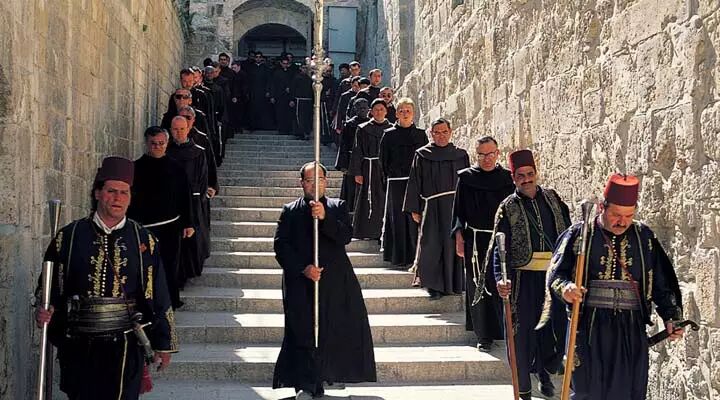 圣墓教堂是耶稣基督遇难、安葬和复活的地方。传说耶稣被害前,就是沿着“受难之路”背负着沉重的十字架,一步步艰难地走向刑场的。