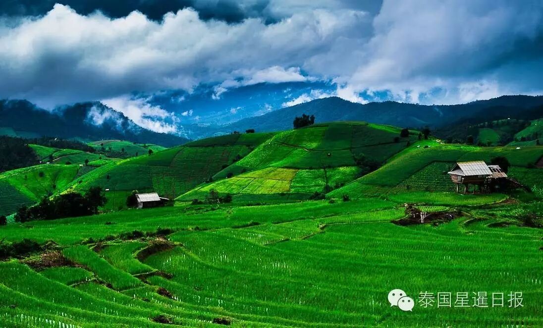 夜珍梯田(นาข้าวขั้นบันได แม่แจ่ม)看满眼的稻田碧绿无瑕,放松身心。回归自然,回归田园。