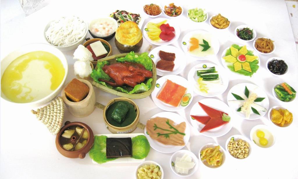 蒙自过桥米线所用食材讲究,用肥鸡、猪筒子骨等熬制的高汤,清澈透亮;肉片用鸡脯、猪里脊、肝、腰花、鲜鱼、火腿、鳅鱼等切成薄片,摆入碟内;米线细白、有韧性;佐料用豌豆尖、黄芽韭菜等,将这些食材分前后的放入高汤中,碗中红、白、黄、绿各种佐料、食物交相辉映,滋味鲜美,使人胃口大开。