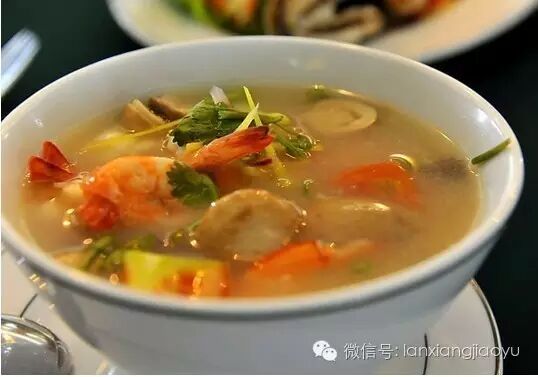 冬阴功汤是一种酸辣汤,其成分有虾、泰国酸柑、辣椒、香菇、高良姜和香茅。据说泰国人患上消化道癌症的机率非常低,是因为常喝冬阴功汤的缘故。泰国家庭常有此汤,全球许多泰国餐馆也提供此汤。 在普吉岛上,几乎家家特色餐馆的看家本领中都有这道菜。