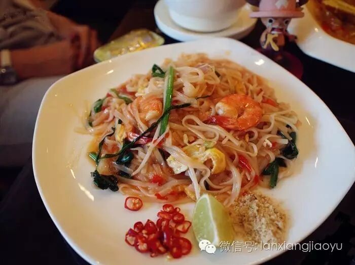 这也可说是泰国菜里的招牌菜,先将河粉用甜酱炒得甜甜咸咸的的,之后在旁边摆上碎花生、辣椒粉、花生粉以及豆芽菜等,要享用之前先把所有的料全部拌匀,再加上几滴柠檬汁,入口后弹牙的河粉与青脆的豆芽,交错出绝妙的口感,在花生粉的香气中,柠檬汁更将整道菜的鲜甜滋味给缓缓带出,最后出现的才是辣...