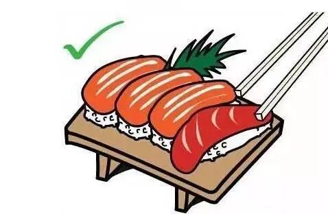 吃寿司的时候为了更好的感受寿司本来的味道,将寿司有料的部分先接触舌头。