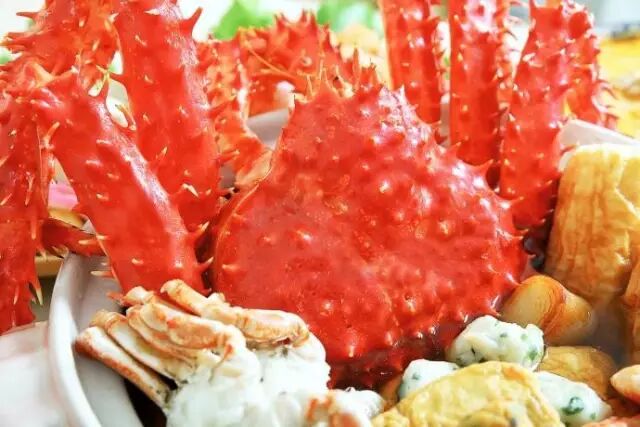 帝王蟹体型最为庞大,蟹腿肉多紧实,一般做成日式涮锅或者烤着吃,蟹黄味道不够好,最佳食用季节是3月-10月。