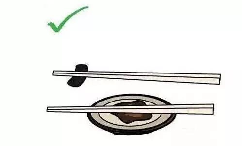 未使用过的筷子才可以放在筷子架上。把筷子放在酱油碟上就是吃饱了的意思。