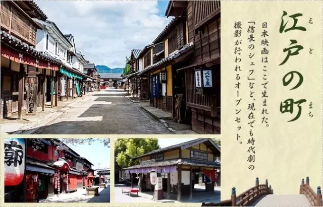 位于京都,1975年开张。其将拍摄了众多日本电影的东映京都摄影场对外开放形成的电影主题公园。有些像杭州的宋城、东阳的横店。这里汇集了拍摄时代剧(历史剧)的各种外景和道具,如日本桥、武家屋敷等。游客们可以穿上武士、忍者、艺伎的服装,体验一下古代人物的情调。还可以参观和各种电影有关的活动,如拍摄、制片现场和制片技术等。