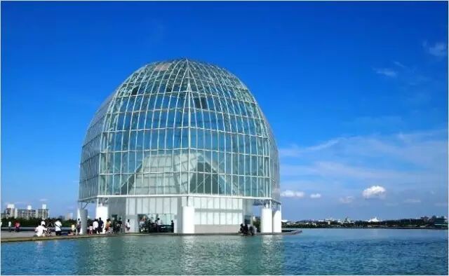 水族馆的入口处,是一个圆形顶玻璃建筑,非常具有创意。水族馆分三层:第一层是世界海洋游乐区,第二层是大海航行者游乐区,第三层是空中广场,可以纵览东京湾的景色。