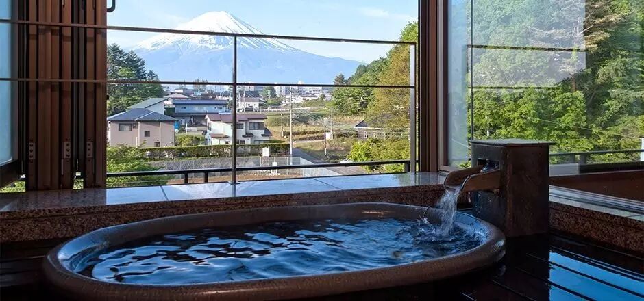 富士山的美景在入浴的时候也可以收入眼帘,您可以在任意的时间同时享受这份上天的馈赠!