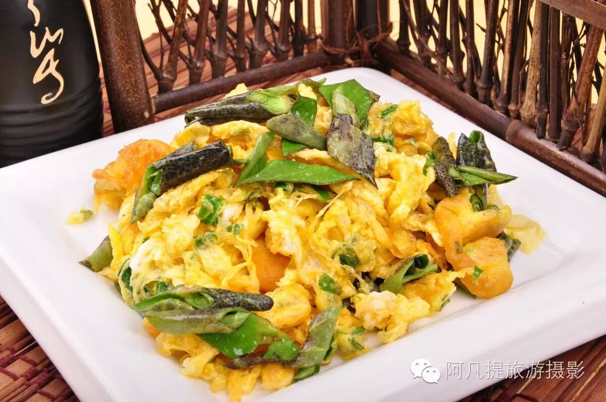 当地的一道特色菜,鸡蛋与荷叶一起炒,味道清香,当地很多餐厅都可以吃到。