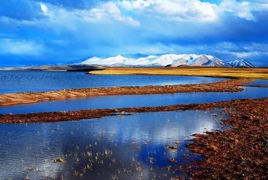 鲸鱼湖海拔4708米,平卧在阿尔金山自然保护区东南部。从空中看这个浩淼大湖,形状恰似一条横卧的大鲸,故而称其为“鲸鱼湖。一条横亘在湖中的自然砂砾堤,将湖分隔成东西两部分。东湖因大量冰川水的融入,形成了“鸥歌鸭舞”的景象,而西湖蒸发量大,含盐量饱和,造成了“万马齐喑”现状,所以人们又把鲸鱼湖叫作“阴阳湖”。