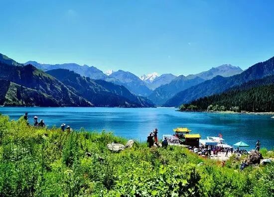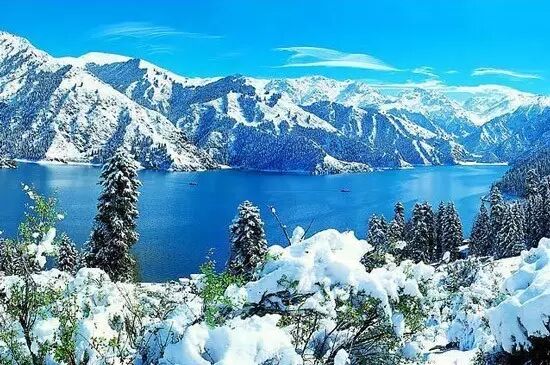 天山天池是新疆著名的旅游胜地,位于天山博格达峰的北侧。湖水晶莹如玉,能倒映博格达峰。湖的四周群山环抱,山上布满了挺拔、苍翠的云杉、塔松,漫山遍岭,风景犹如仙境。天池最佳的游览时间是下午,这时候光线柔和,湖水会非常好看,近处碧绿,远处幽蓝的样子。