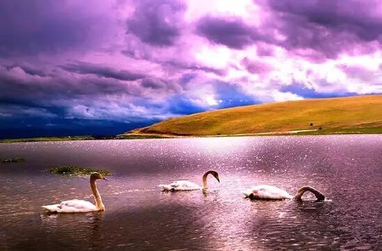 巴音布鲁克的天鹅湖,是我国唯一的天鹅自然保护区,栖息着我国最大的野生天鹅种群。天鹅湖是由众多相通的小湖组成的湖沼地,天气晴朗的时候,能看到白云倒映在或大或小的水塘中。这里的天鹅用各种各样的身姿欢迎游客的到来。