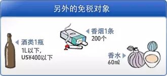 注意:对未成年者(19岁以下)限制酒类和香烟的免税