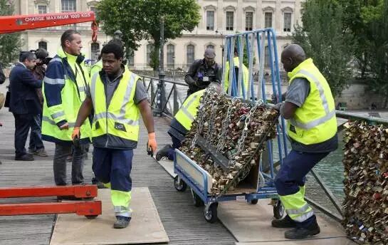 因此市政厅的雇员从去年底开始加大了移除艺术桥上悬挂的“爱情锁”。