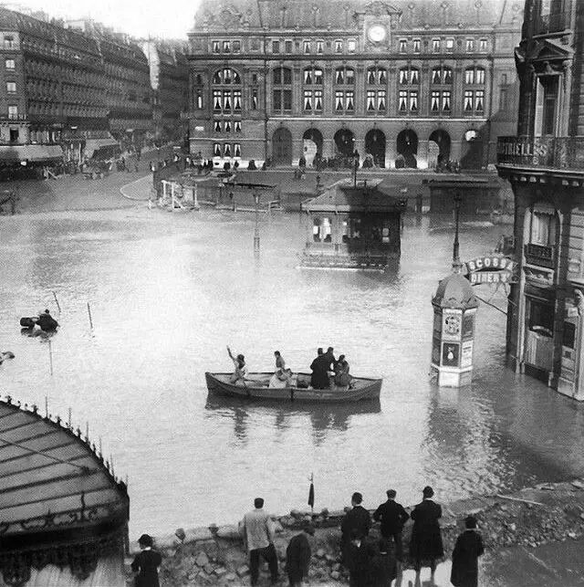 1910年塞纳河在圣拉扎尔火车站段泛滥
