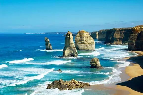 大洋路位于墨尔本西部,拥有世界上最壮观的海岸公路风光,这里有宁静的海湾、冲浪海滩、热带雨林、山洞和风口,也有举世知名的景点——奇特的天然石柱“十二使徒岩”。