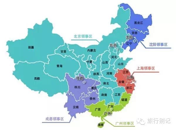 1.北京领区:北京、黑龙江、吉林、辽宁、天津、山东、河北、内蒙古、山西、河南、宁夏、陕西、四川、重庆、甘肃、青海、新疆和西藏