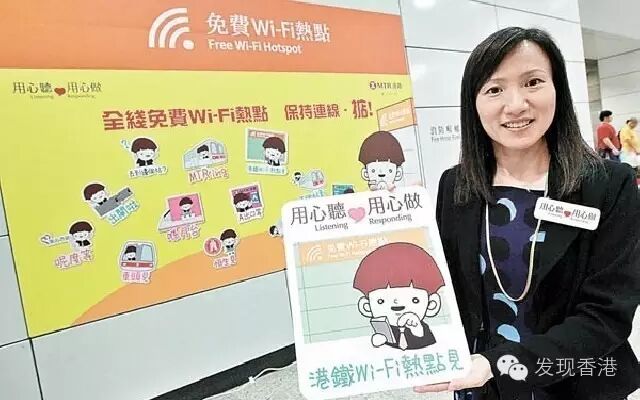 所有港铁车站都设有免费Wi-Fi热点,您可使用手机或电脑在贴有「免费Wi-Fi热点」字样的附近范围内,以网路名称「MTR Free Wi-Fi」登入,享用每节15分钟的Wi-Fi服务(每部智能手机或电脑每天最多可使用五节)。