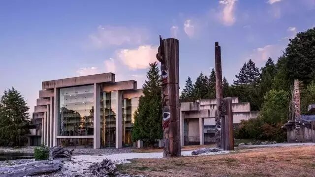 到过这里的同学都知道,博物馆本身的建筑,就是一件艺术作品。博物馆由加拿大知名建筑师Arthur Erickson设计,以水泥和玻璃为主要的建筑材料,外形仿照的是加拿大西北海岸原住民的房屋结构,颇具特色又不失大气。而博物馆后方临海的广场,被图腾柱环绕,是个感受原住民文化的绝佳地。小编强烈建议在温哥华的小伙伴们可以来这座博物馆看看!