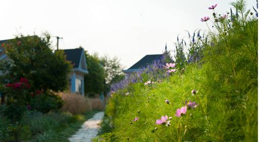 上岛的唯一途径就是简约而又大气的木栈桥,柔软而又酥松的泥地上有一条漂亮的灰砖石道,小道两旁是迷迭香、紫苏等各种香草,整个岛屿被晶莹剔透的湖水所包围,岛上整块的薰衣草花田被直径约80米的半环状分布的小屋别墅环抱,让您每天在香草的气息中醒来,多么惬意……