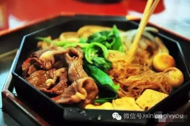 这家明治六年创立,迄今已130年的牛肉寿喜烧店享誉世界。传统的老式木结构屋子令来客有种时光倒流的错觉,拾级而上,入座包房,席上有红色的八角炉和简单的盘饰。店家最著名的是寿喜烧,标榜最传统的关西做法,不是一般见到的抹点黄油,而是在锅底洒上些许砂糖,据说这样能使肉质更柔嫩。