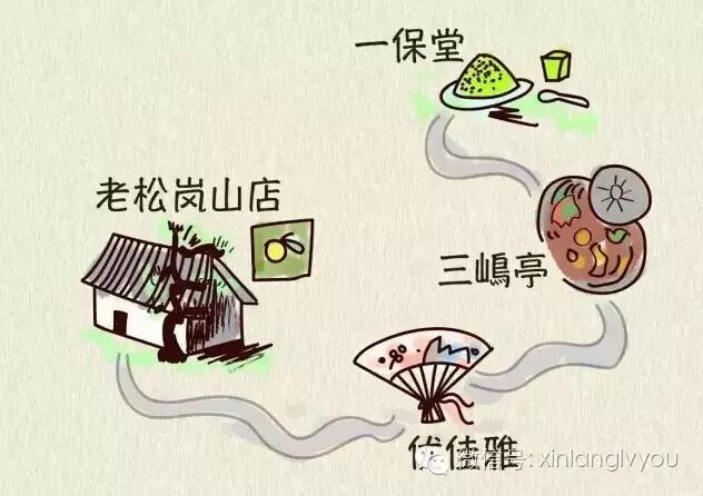 建议路线:优佳雅、三嶋亭和一保堂位于京都的中京区,老松位于较远的岚山区。可以先去岚山区附近,逛逛老松边上的龙山寺和岚山老街,然后回到中京区逛另外三家百年老店~