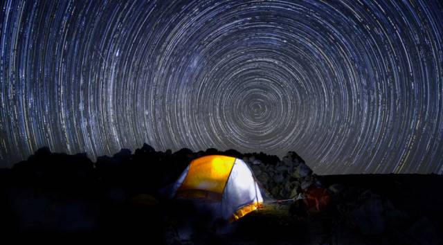 静谧的没有光污染的夜空,银河就这样倾泻而下,一览无遗地展示着她的惊世之美。