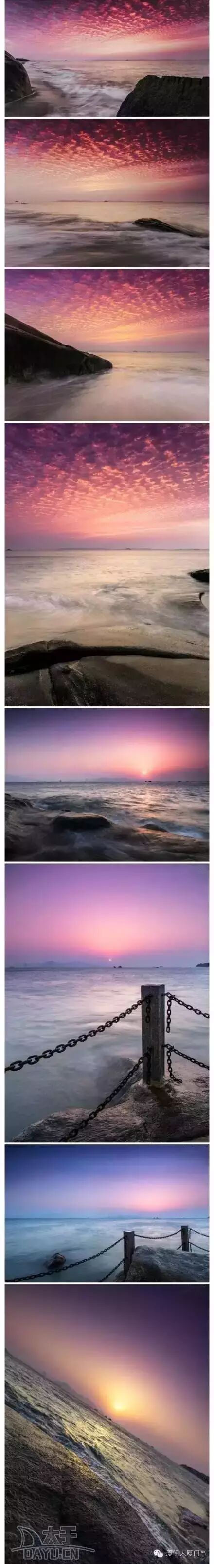 每个人来海边都会有日出情结,在海风摇曳,海浪矫情的早上,在柔软的沙滩上,静静的等待唯美剧情一点点上演。刚睡醒的太阳,从海平面慵懒起床,天空的颜色开始交织变换,姹紫嫣红,每一秒钟的色彩都会让人怒拍照,不舍得眨眼睛,生怕错过那一抹难得的惊艳……