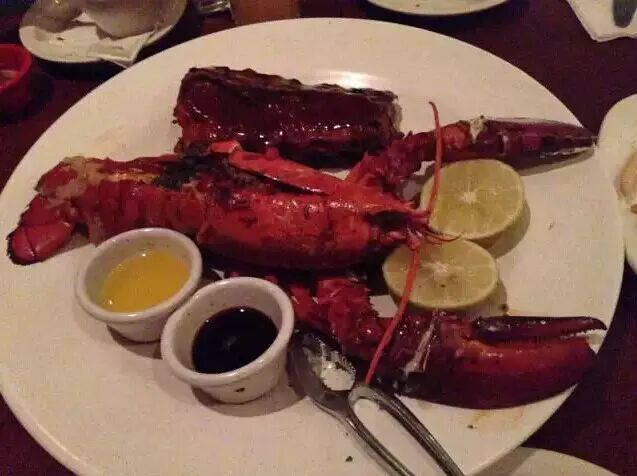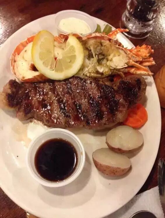 2人可以点龙虾+BBQ 猪肋排套餐; 烤土豆和炸薯条很美味, 薯条比中国的要粗大, 口感比较厚实, 烤土豆有一种奶香味; 烤薯皮也很有特色, 可以尝试。还有其它多种口味的肋排、炭烤肉品如牛排、烤鸡、海鲜及美国人最爱的香酥洋葱砖、香烤马铃薯皮、烤马铃薯汤、沙拉和汉堡。