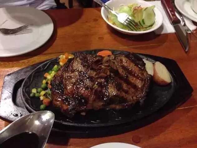 美式牛扒店,店内装修为西部牛仔的风格。餐厅牛排比较有特色, 有牛排龙虾套餐,包含半个烤龙虾、餐汤一份、海鲜蔬菜沙拉一份、蟹肉、虾仁和仙贝、面包一份。