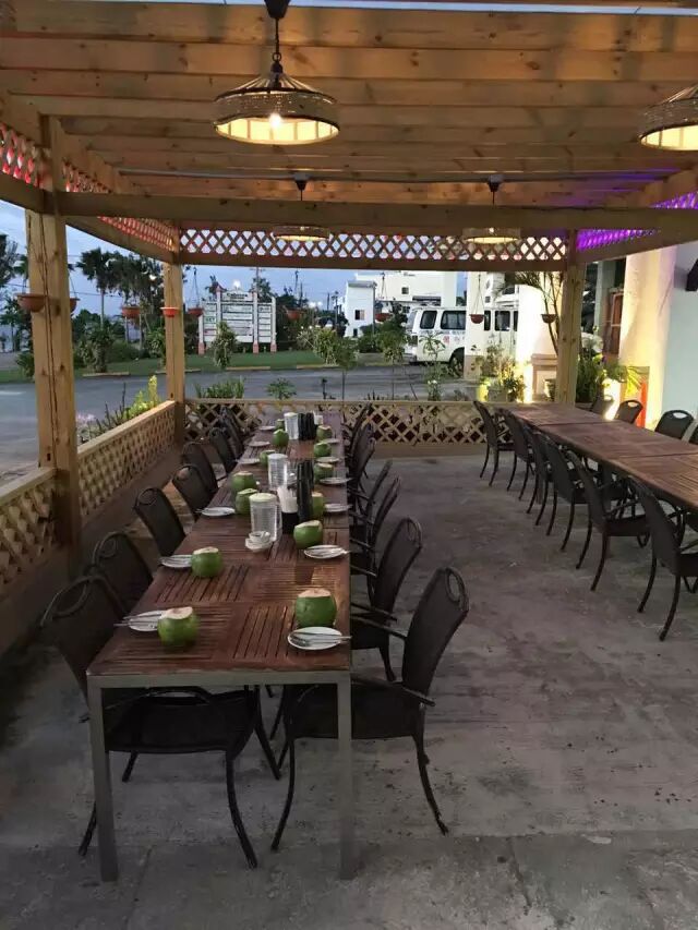 在临海的餐厅里,吹着凉爽的海风,听着美妙的音乐,吃着美味的BBQ美食(如当地特色的红米饭、新鲜的椰子汁、水果沙拉、烤肉等),当美景、美食汇杂交织在一起,真有一瞬间感觉世界大同了。