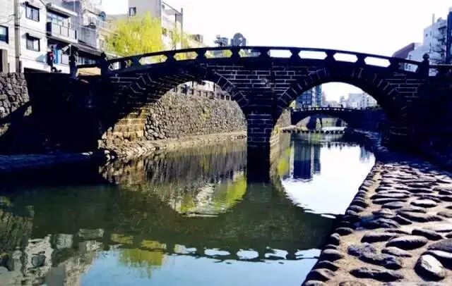 眼镜桥位于长崎市中岛川上,1634年由中国僧侣如定设计,是一座石制的双孔拱桥。